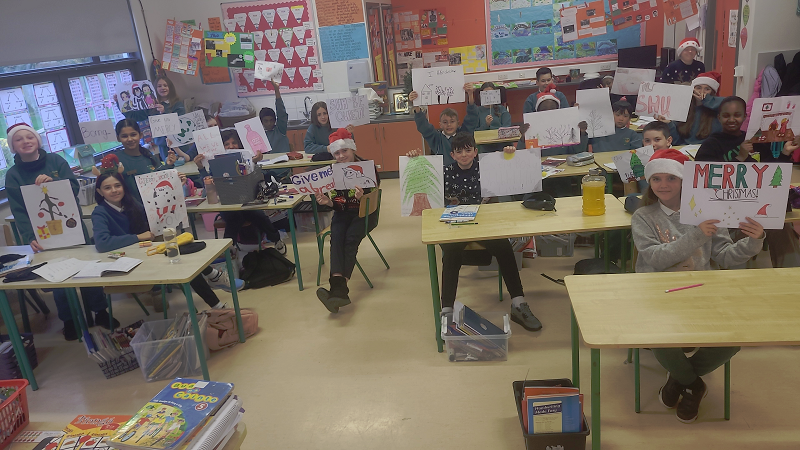 Here is Mr. O'Brien's class completing art work for their Christmas play - Caught by Christmas.
