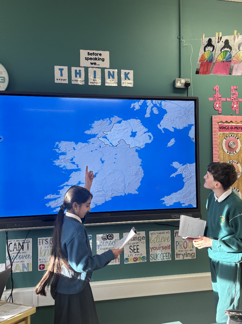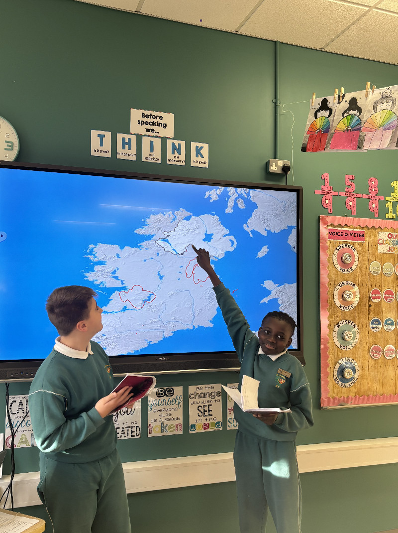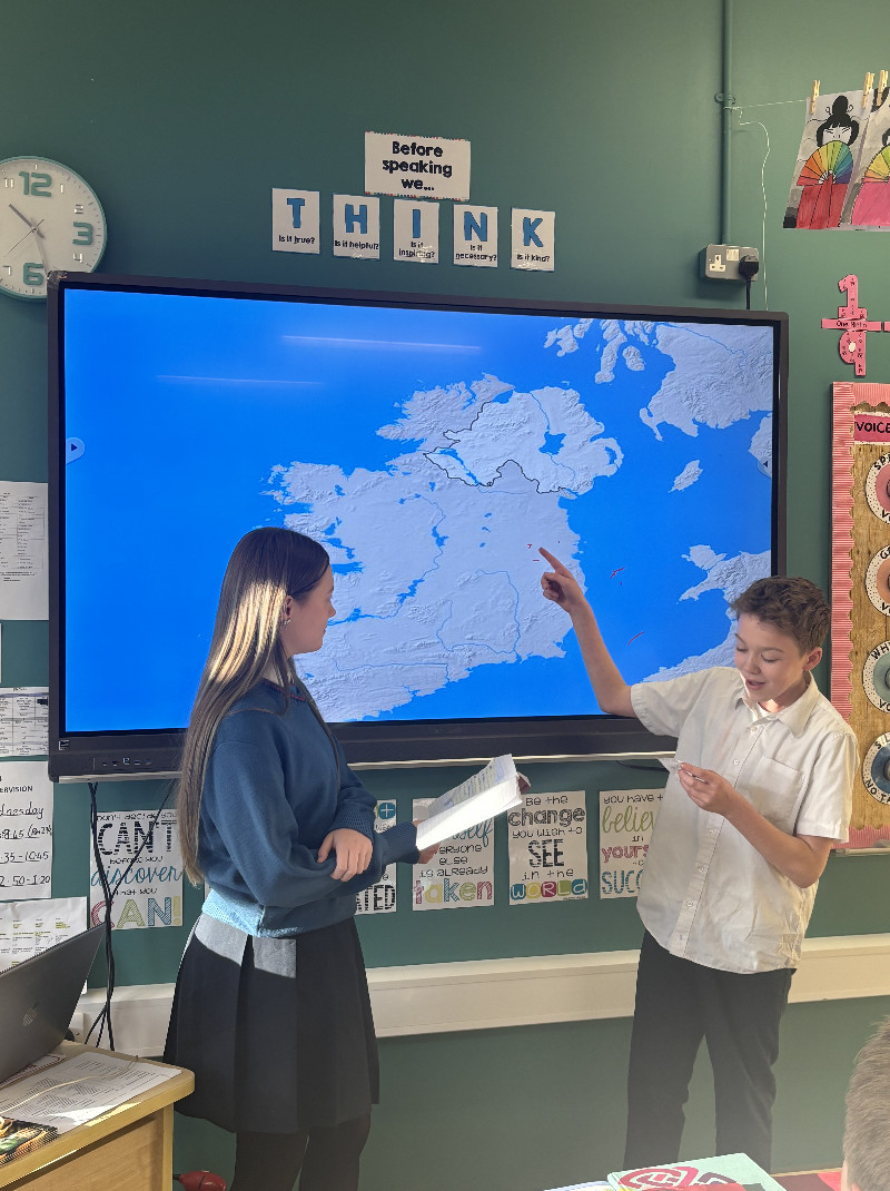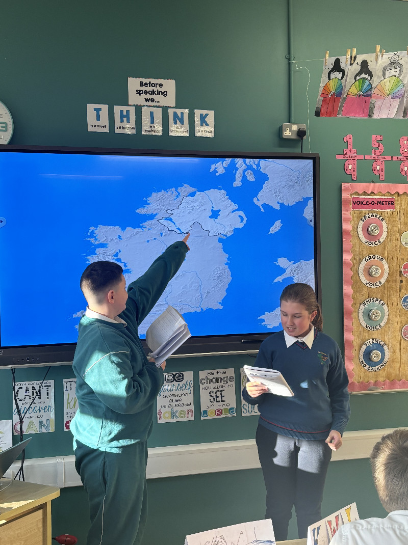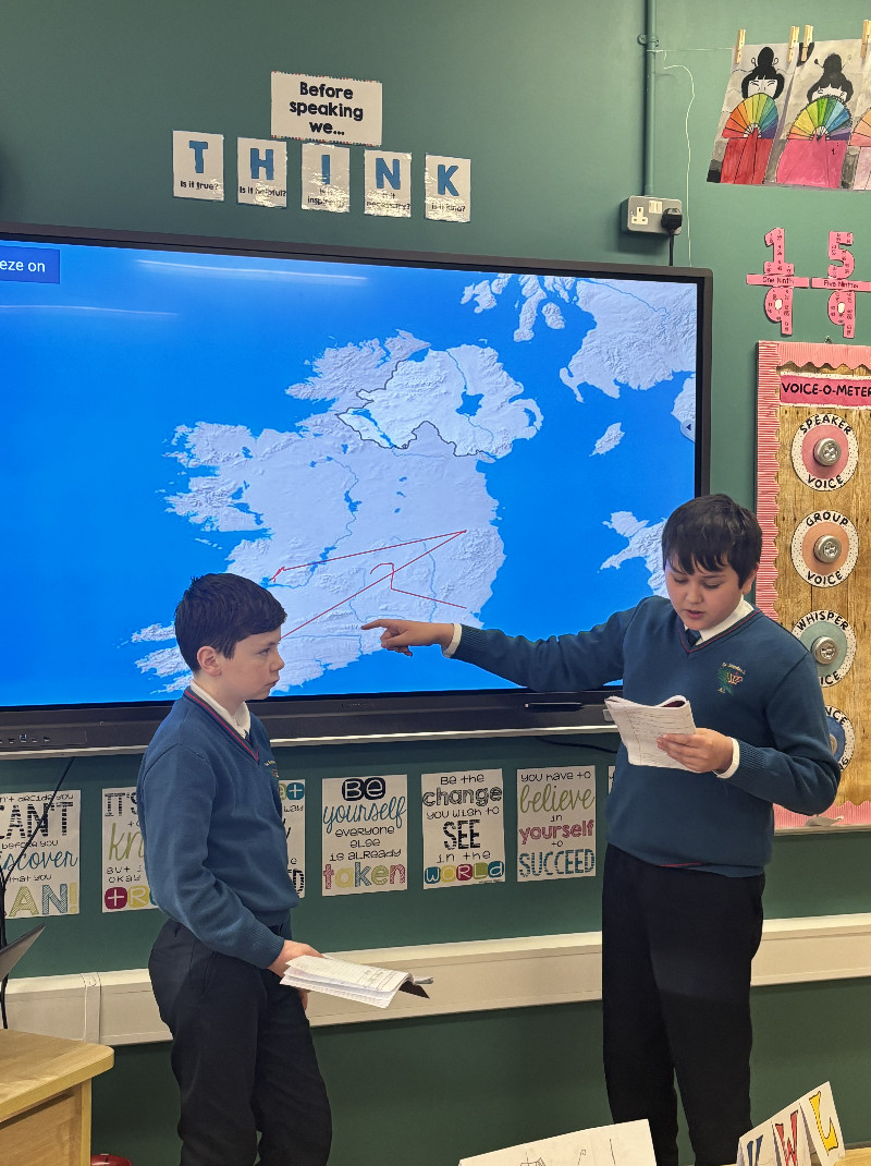 In Irish, we're learning about the weather during the winter season. The children in pairs, prepared and presented the weather forecast to the class. The children really enjoyed working in pairs for this activity.