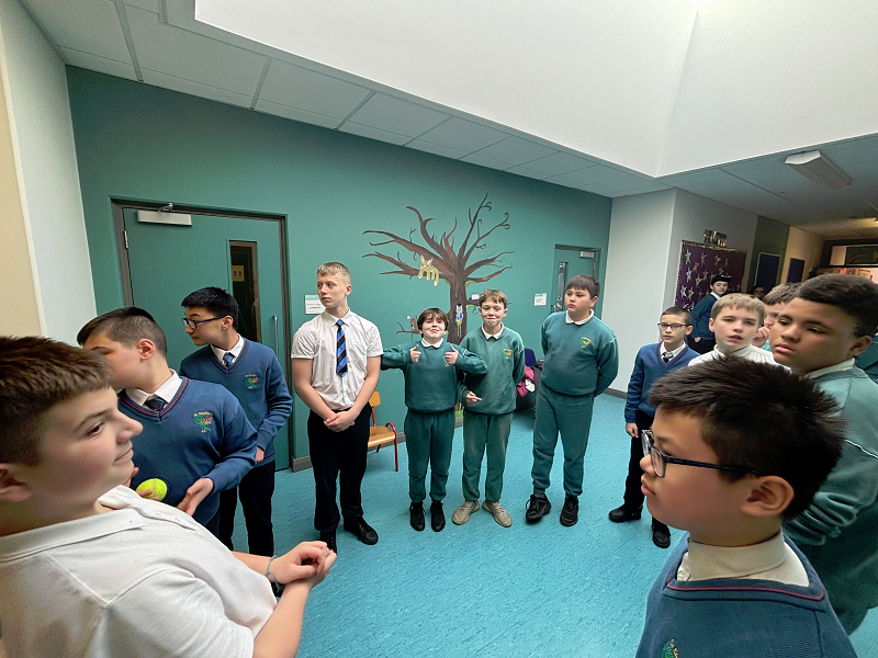 Bhí na daltaí i rang Mr. Brennan ag foghlaim fúthu féin agus faoi a scoil ar fud na míonna. Rinne siad ciorcal comhrá an i rith na seachtaine. Chuir siad ceisteanna ar a bpartnéir (trí Gaeilge). Nuair bhuail an chlog, bhog siad go dtí an chéad duine eile. Ba dheis iontacht a Gaeilge a fheabhsú agus caidreamh nua a thógáil ar scoil. Bhain an rang go léir sult agus taitneamh as an gniomhíocht.