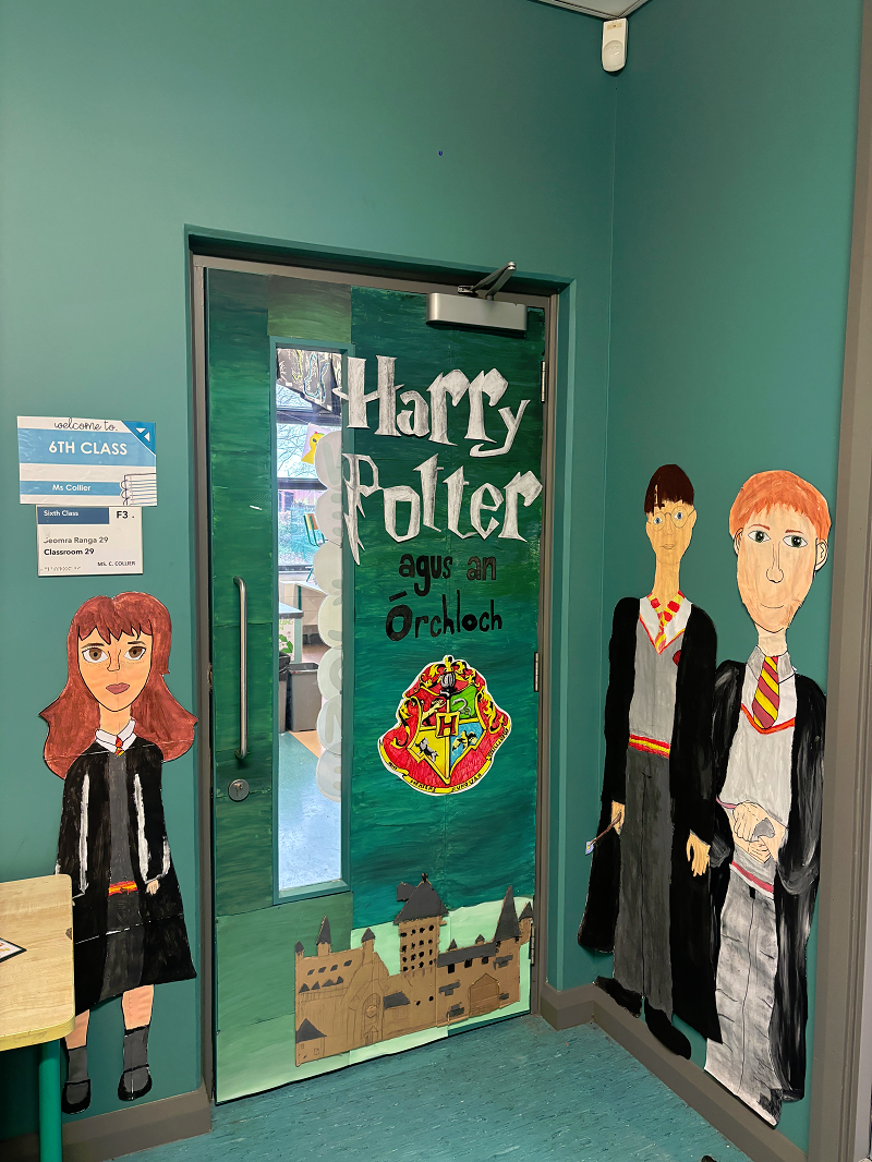 On the 7th of March we will celebrate World Book Day in school. In preparation for World Book Day each class is designing their classroom door based on their favourite Irish book. As a class, we decided to design our door based on the book Harry Potter agus an Órchloch. The children all worked together to design our classroom door and did an amazing job. Well done to everyone!