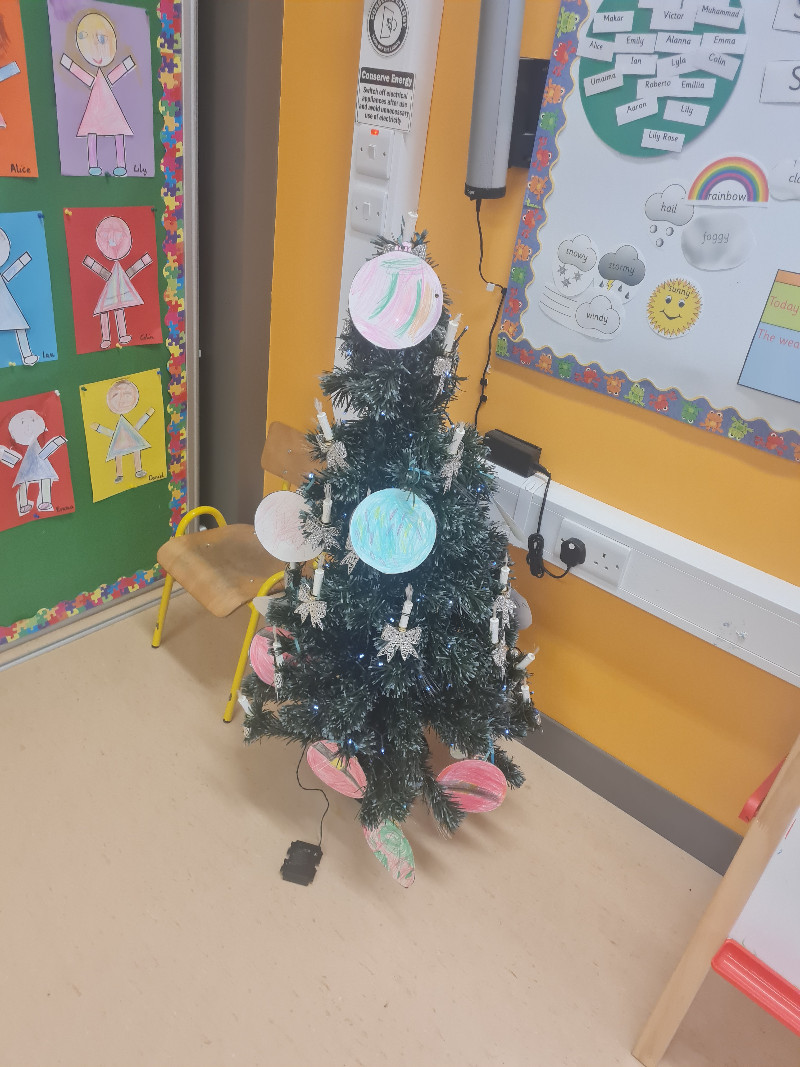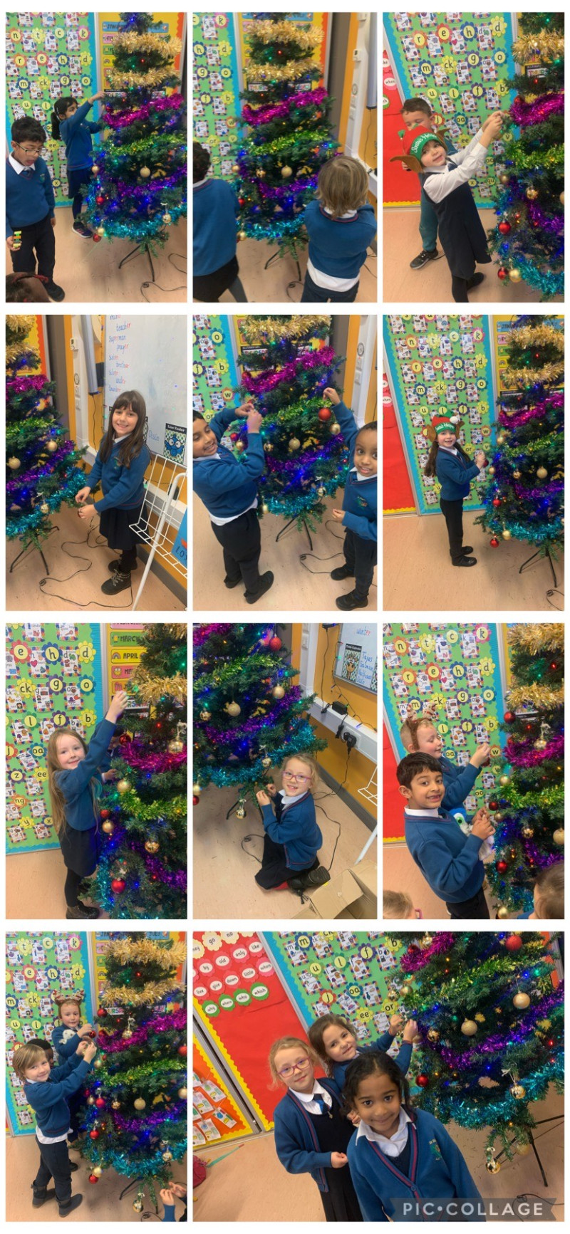 Look at us decorating our Class Christmas tree!