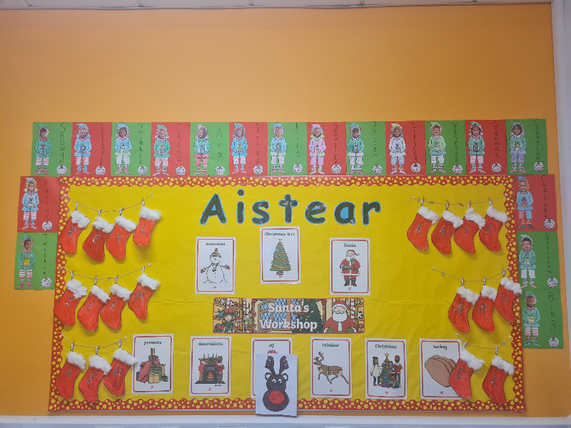 Christmas is always a special time of year in every classroom. Our Aistear space was a hive of activity as Santa's Workshop. Alongside our learning lots of arts and crafts were brought home for all to enjoy. Take a look at who paid a visit to our classroom, we loved every minute of it, the huge smiles says it all! We hope you enjoy our amhráin and songs, we loved singing and performing them.