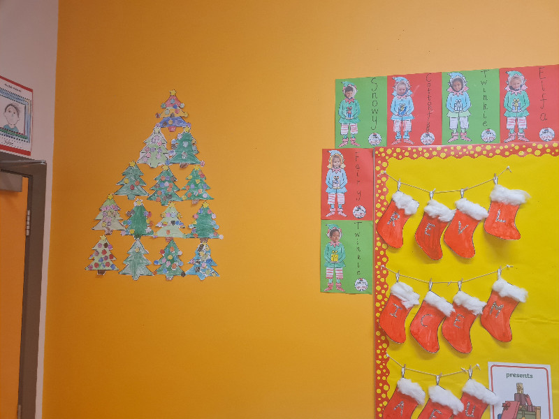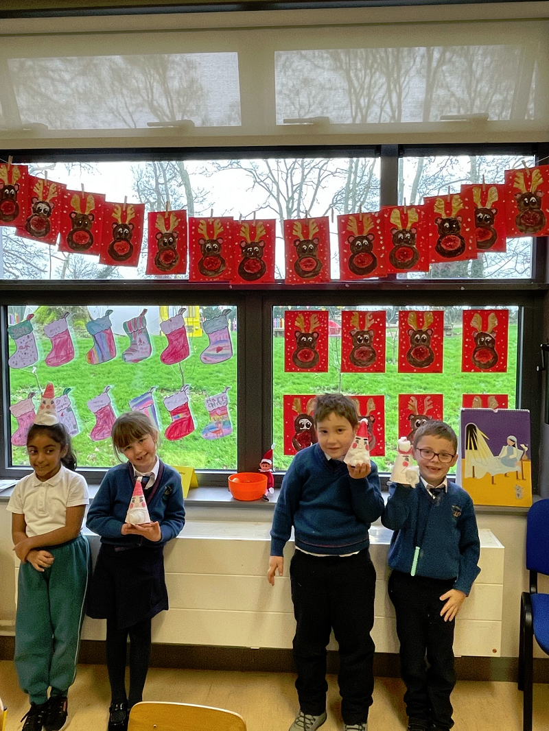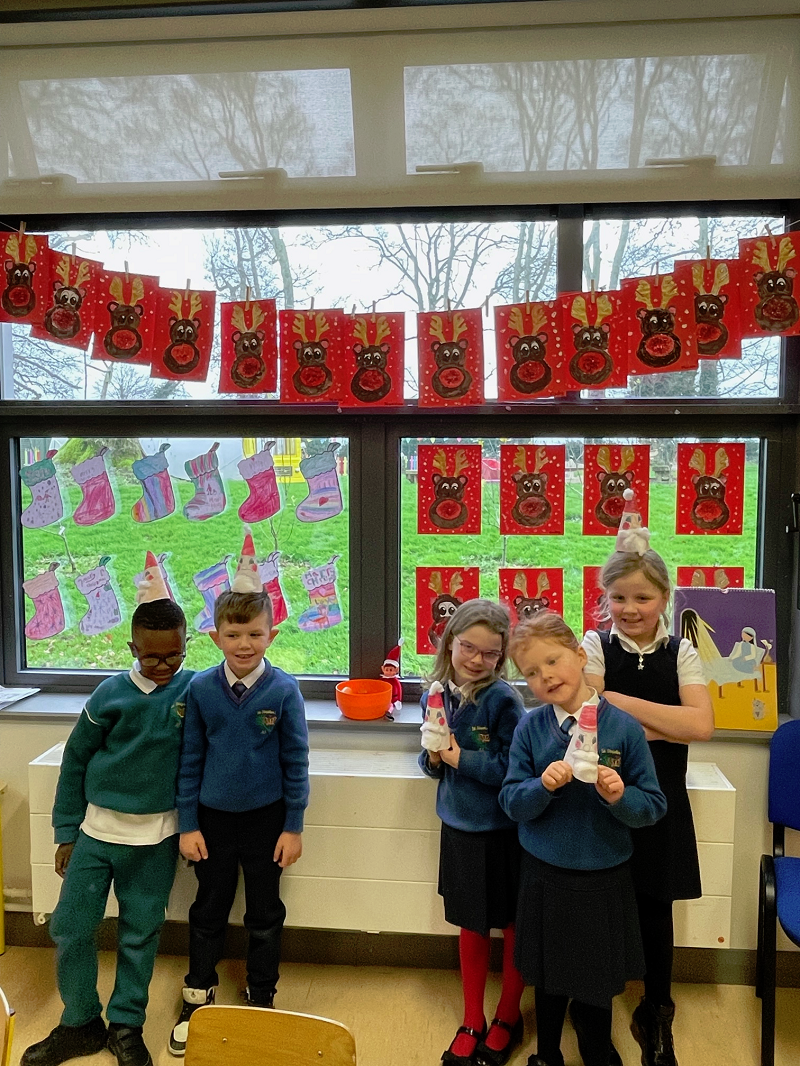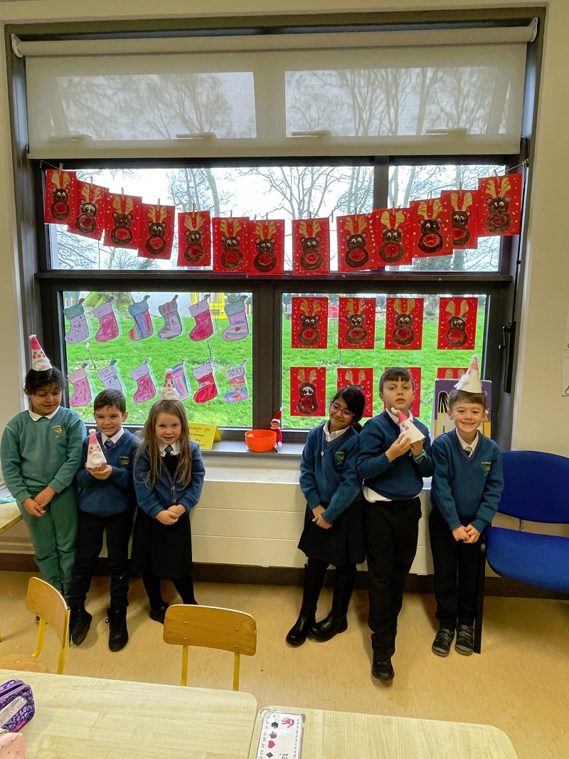 Ms Foleys Junior Infants have been having great fun in the lead up to Christmas. They loved there visit from Santa on Wednesday. They have been very busy making Christmas crafts. Sparkle the elf put their initials on their stockings on night when the children went home...do you like them?