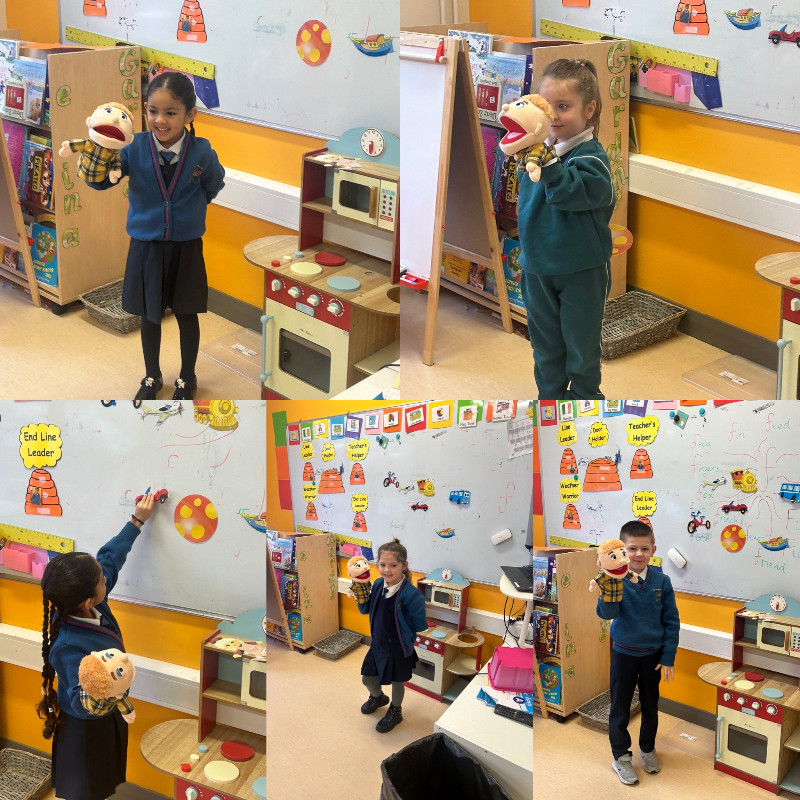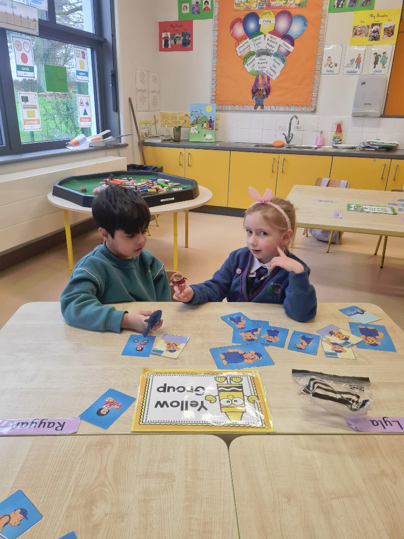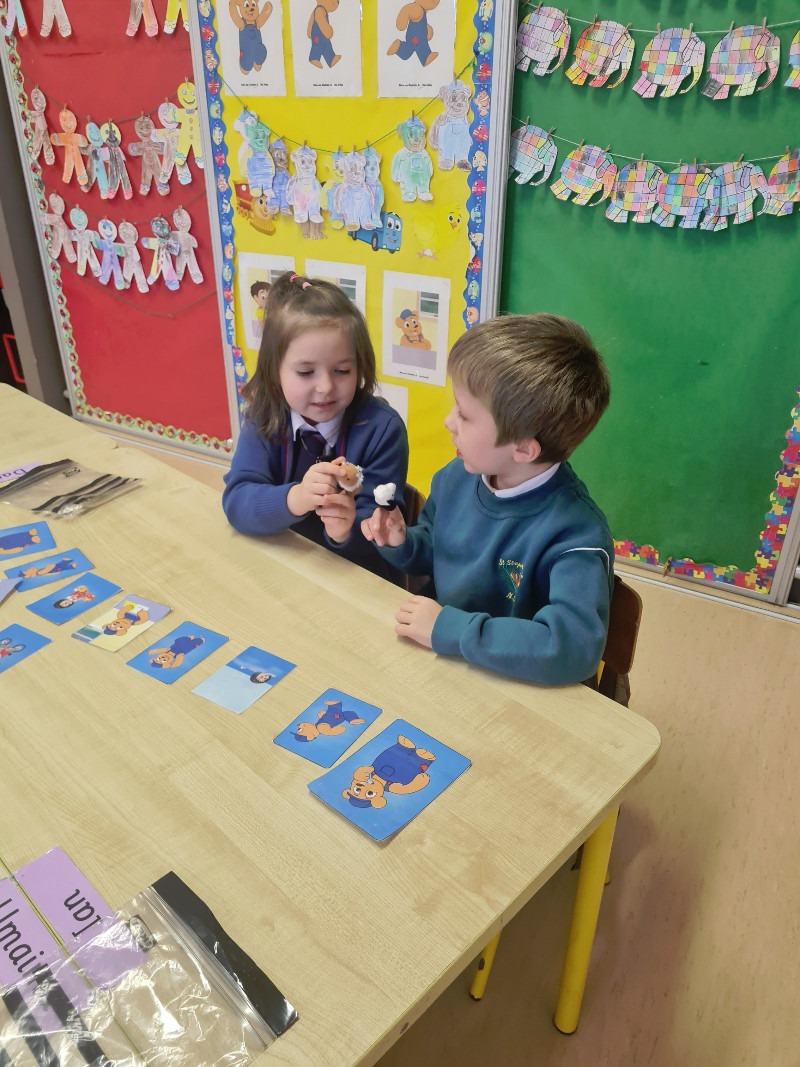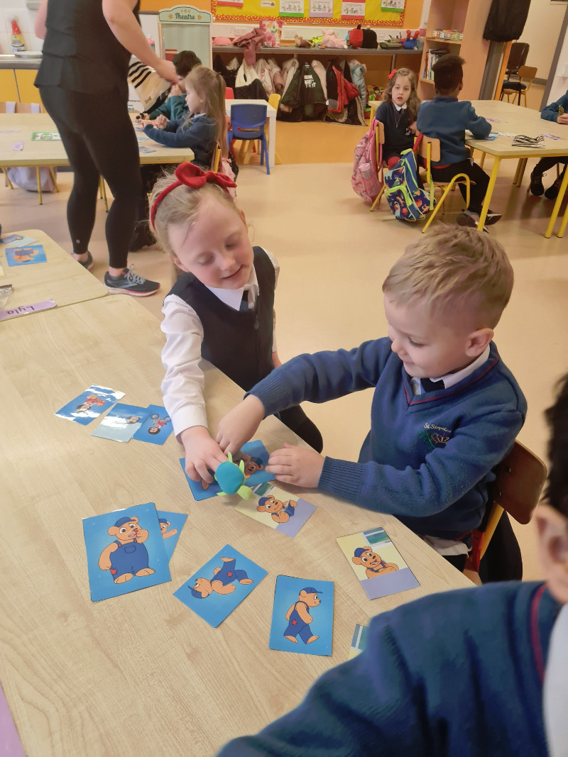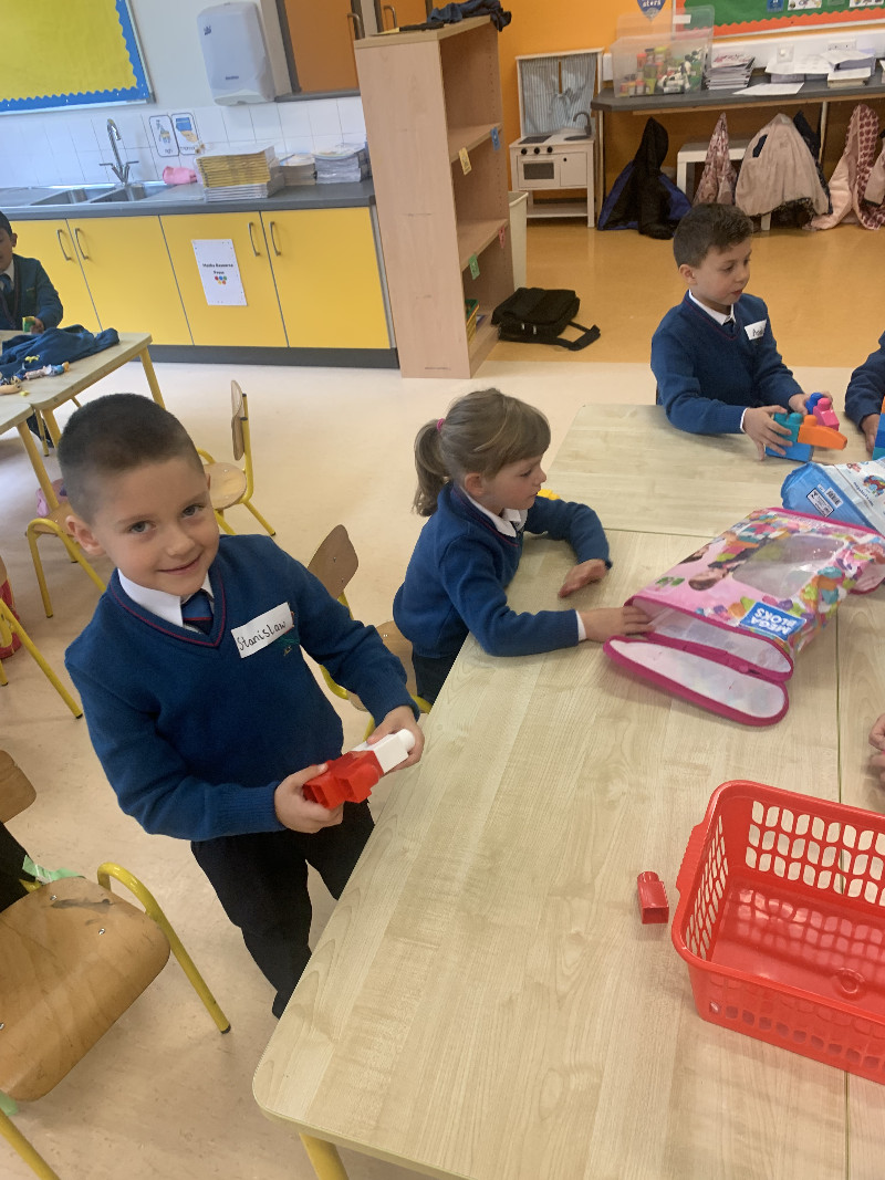 Ms Tuite’s class are learning all about Toys. We are having great fun playing in the toy shop, playing with the puppets from our story ‘The Old Toyroom’, making toys with playdough and printing with toys.