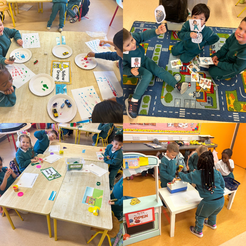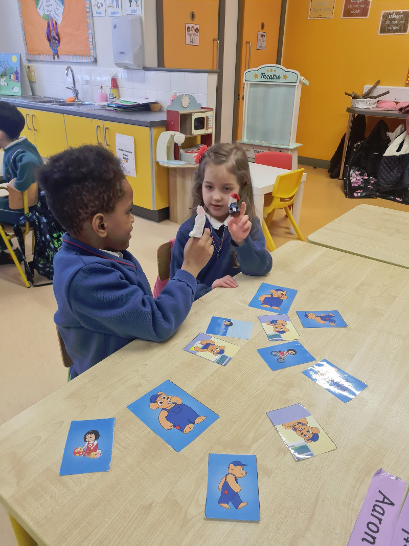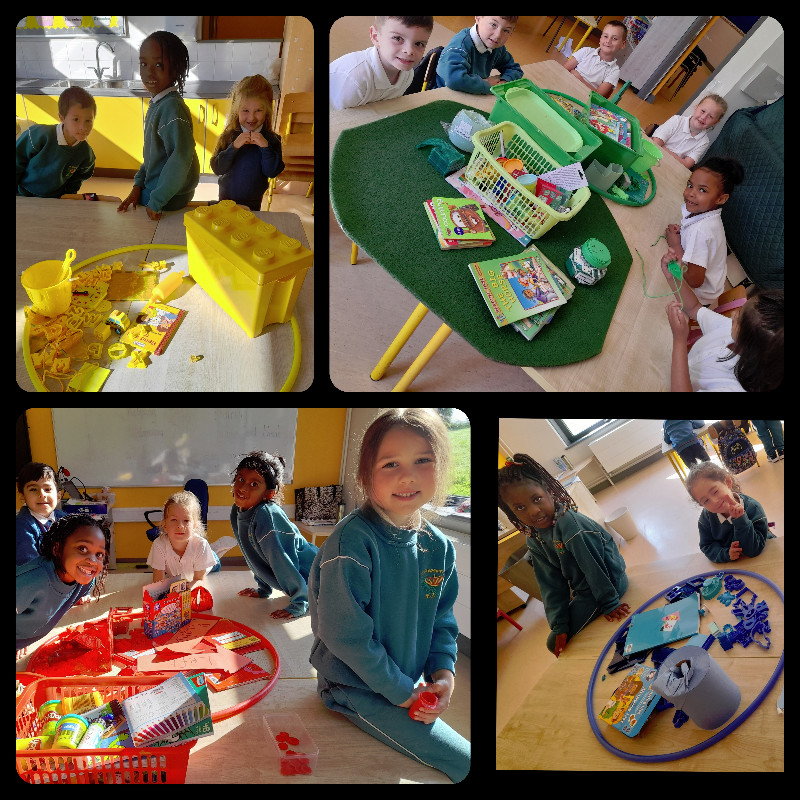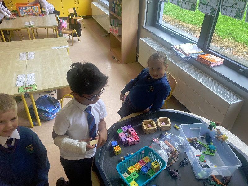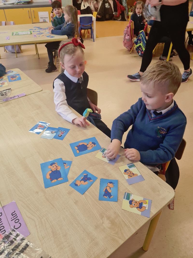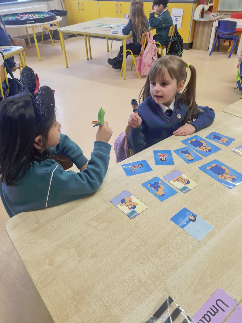 Ms Tuite’s class are learning all about Toys. We are having great fun playing in the toy shop, playing with the puppets from our story ‘The Old Toyroom’, making toys with playdough and printing with toys.