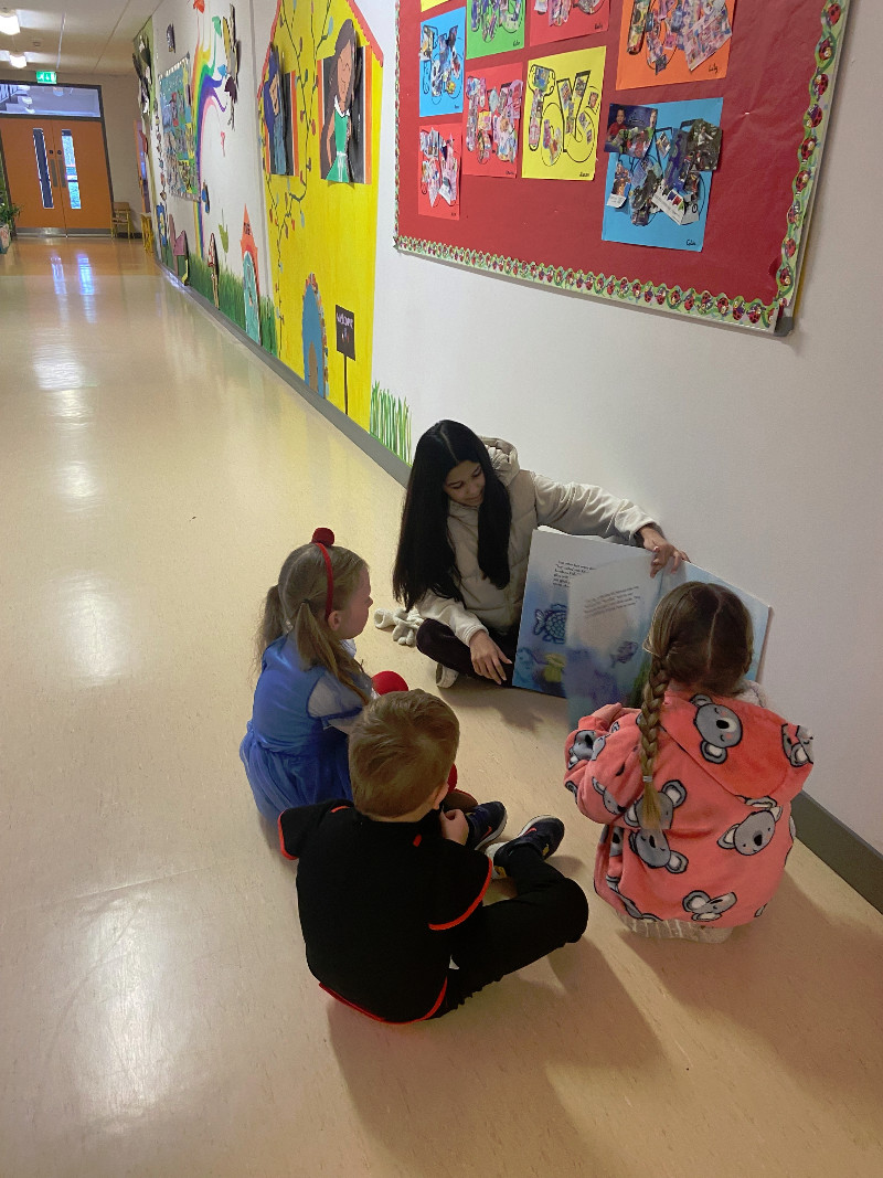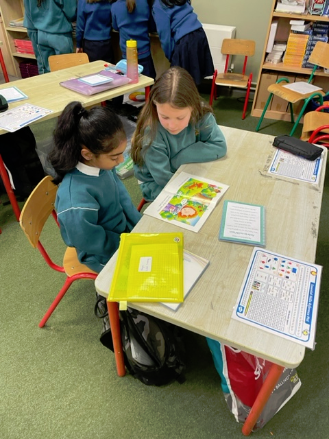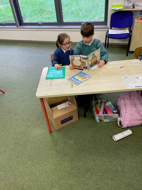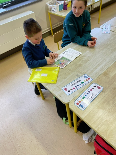 Working really hard showing Ms Rowan's 3rd class how great we are at reading!