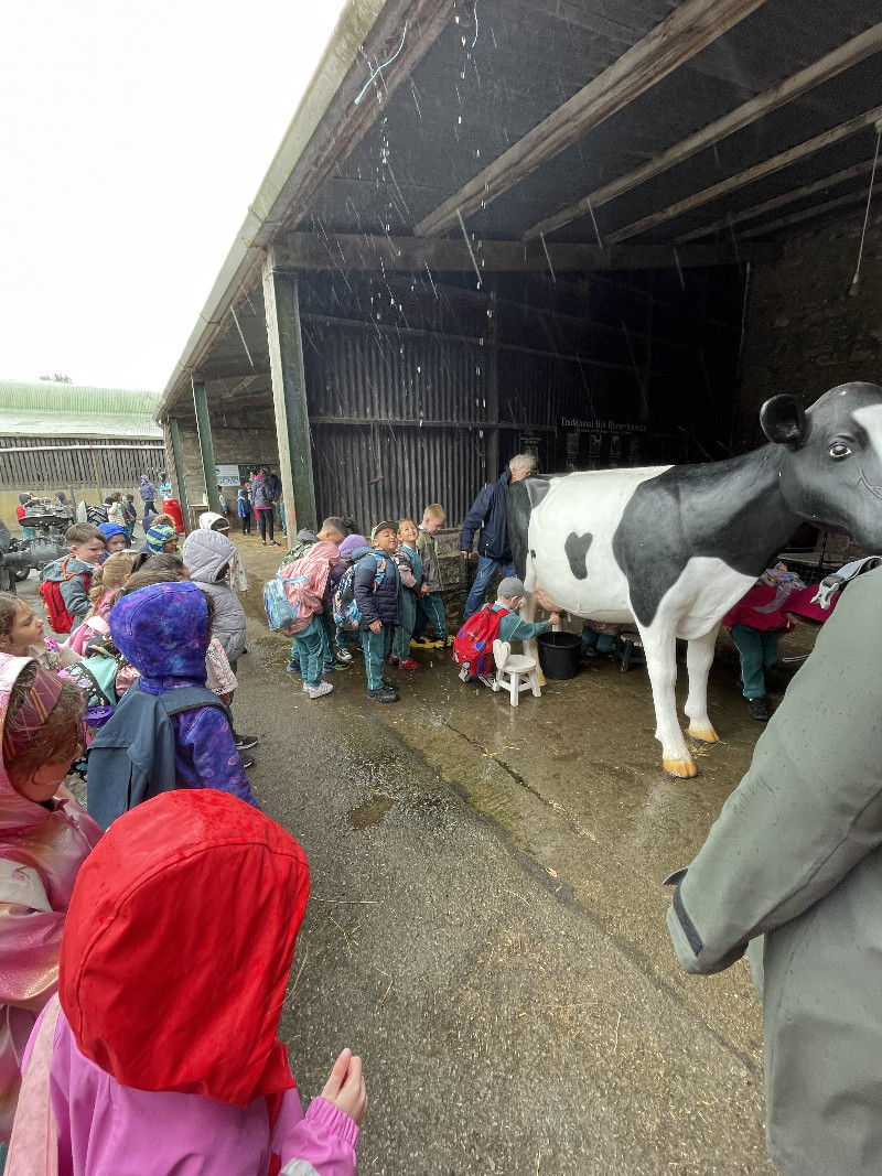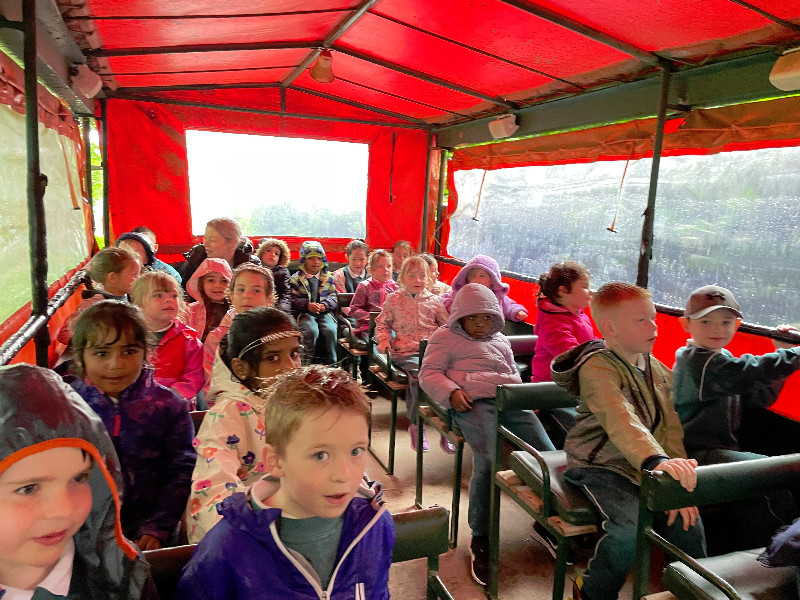 Despite the rain the children had a great day on their school tour to Newgrange Farm. We saw a lot of animals and went on a tractor ride with Farmer John.