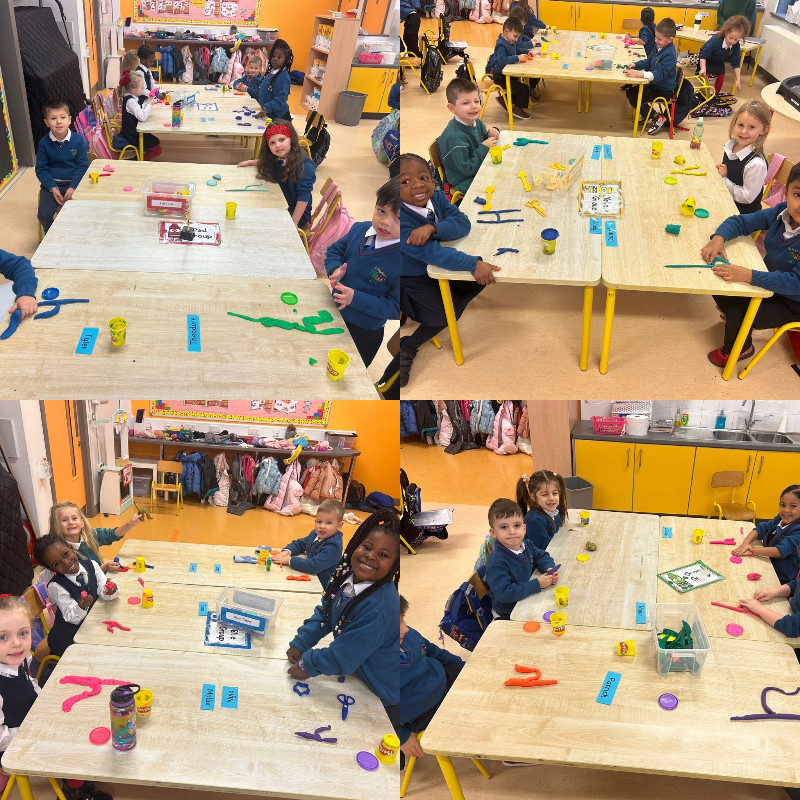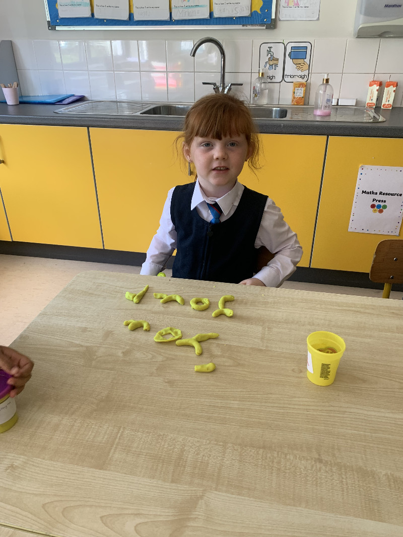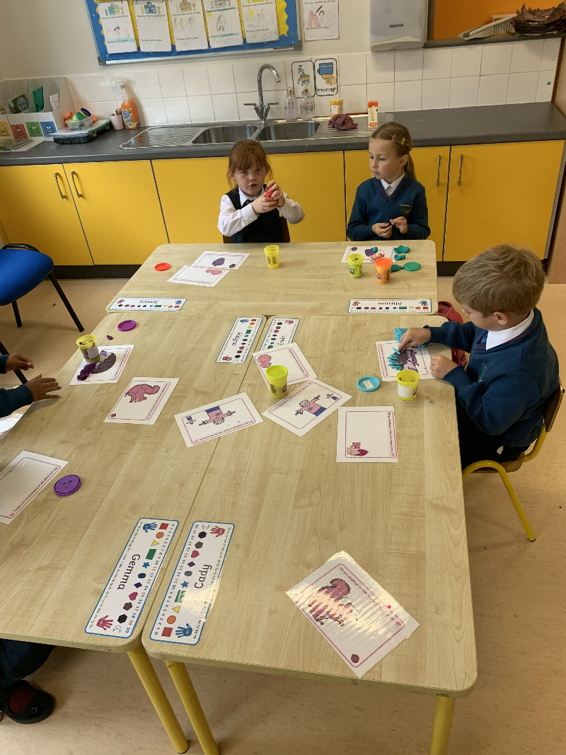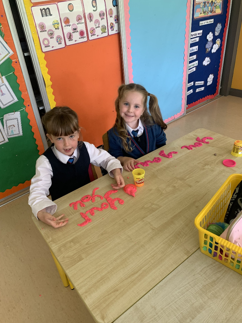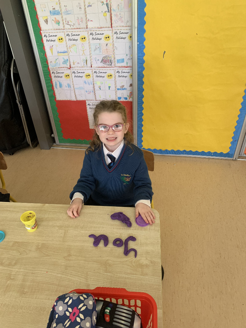 Ms Tuite’s class are very busy this week learning the sound ‘h’. We made the formation for ‘h’ with playdough.