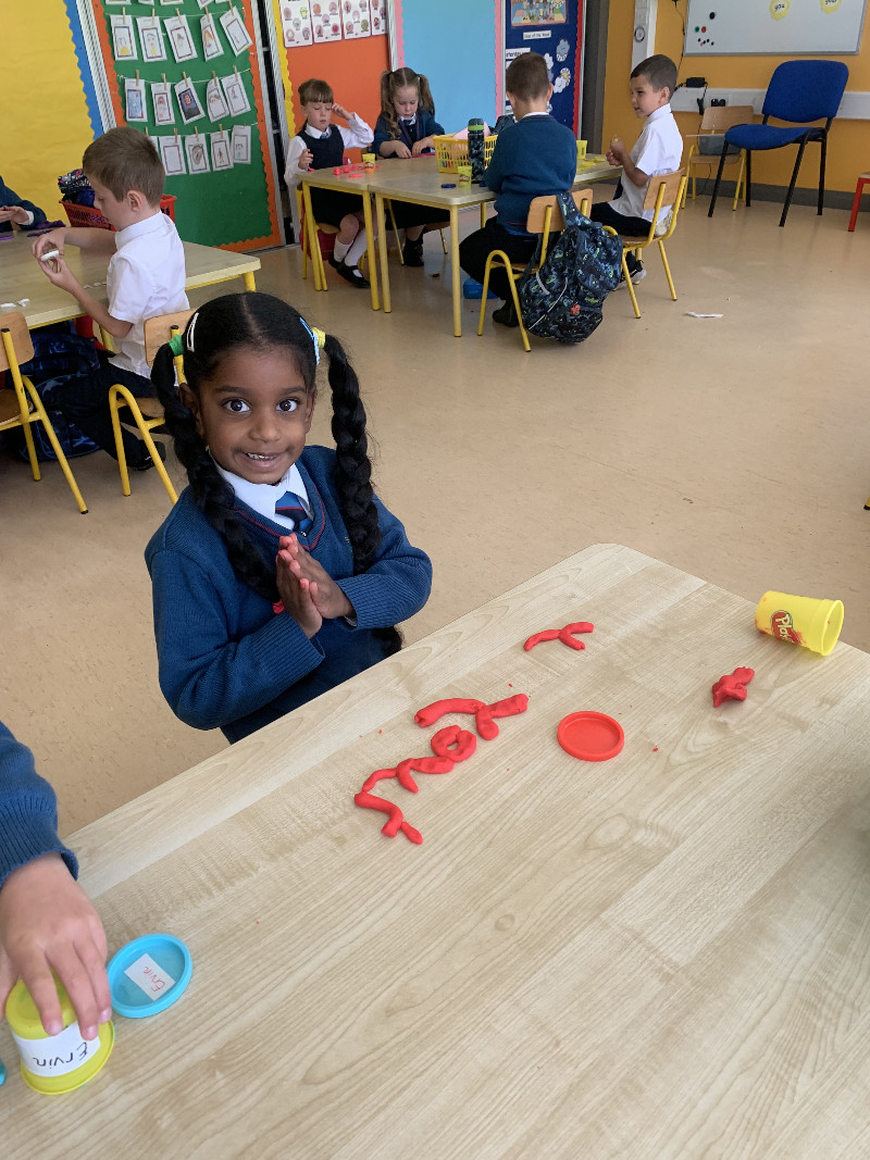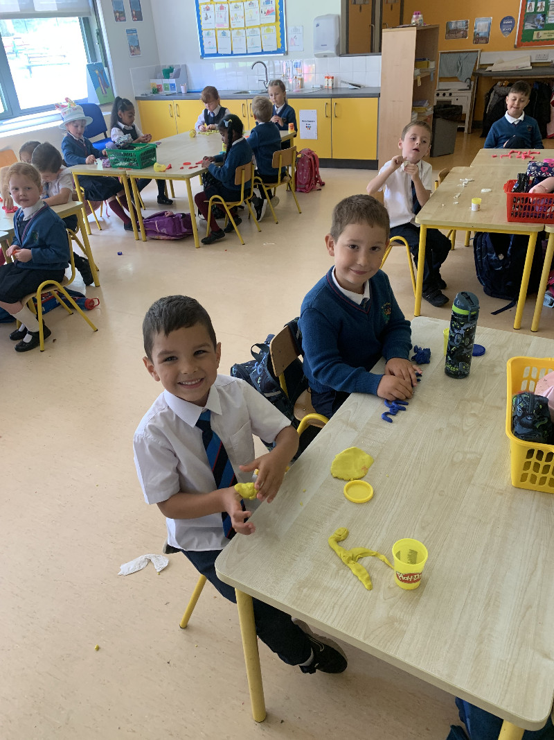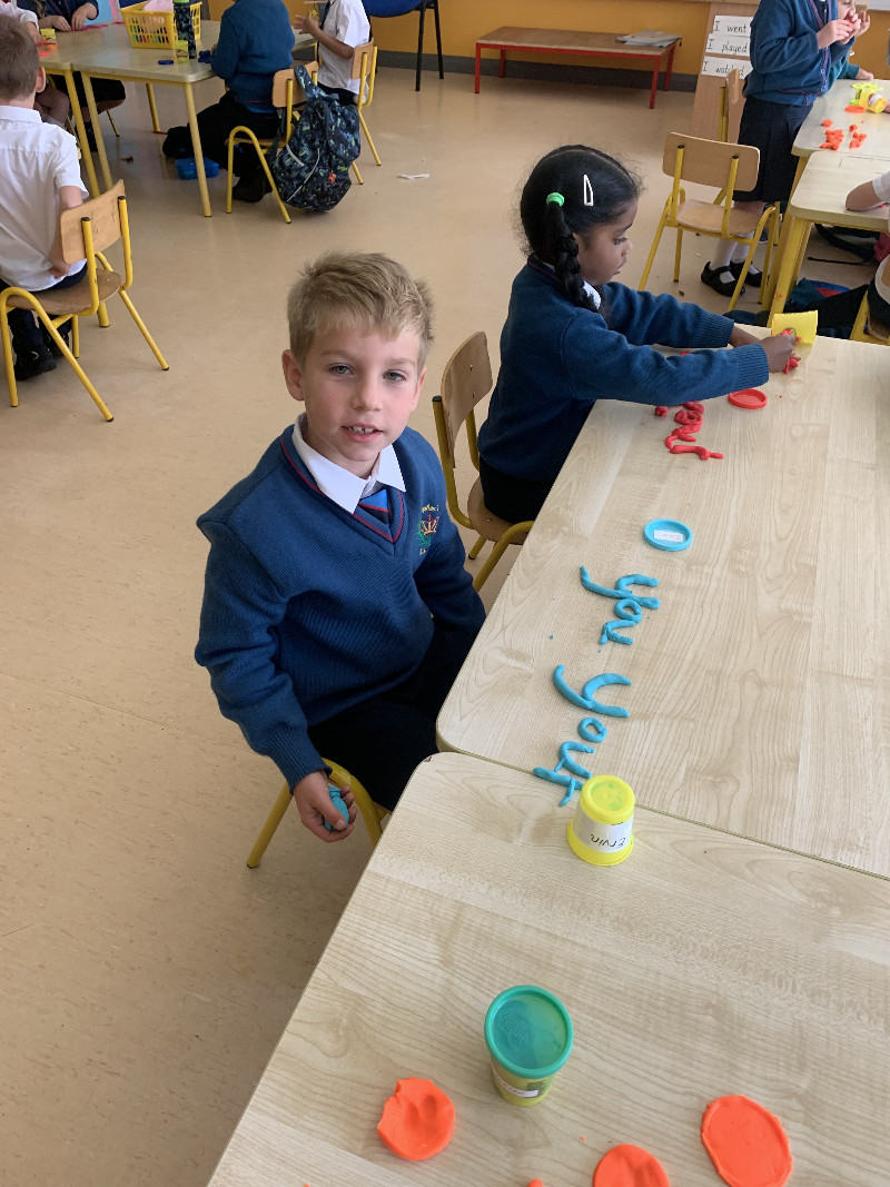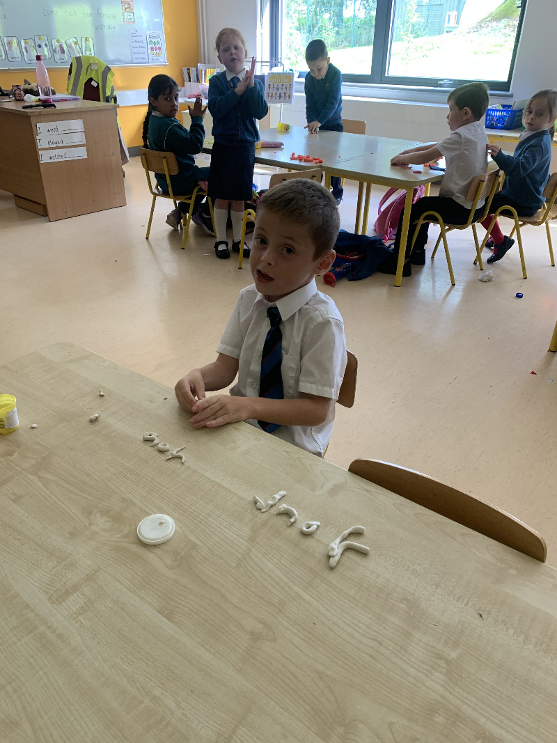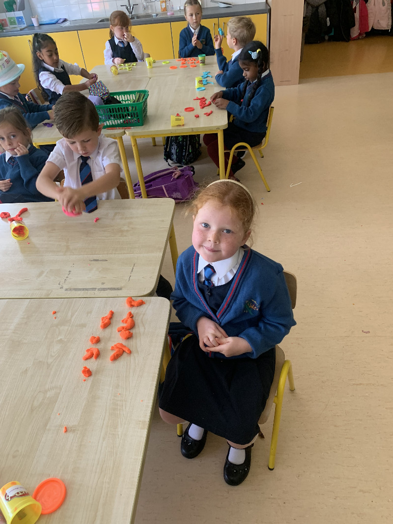 Ms Tuite’s class are very busy this week learning the sound ‘h’. We made the formation for ‘h’ with playdough.