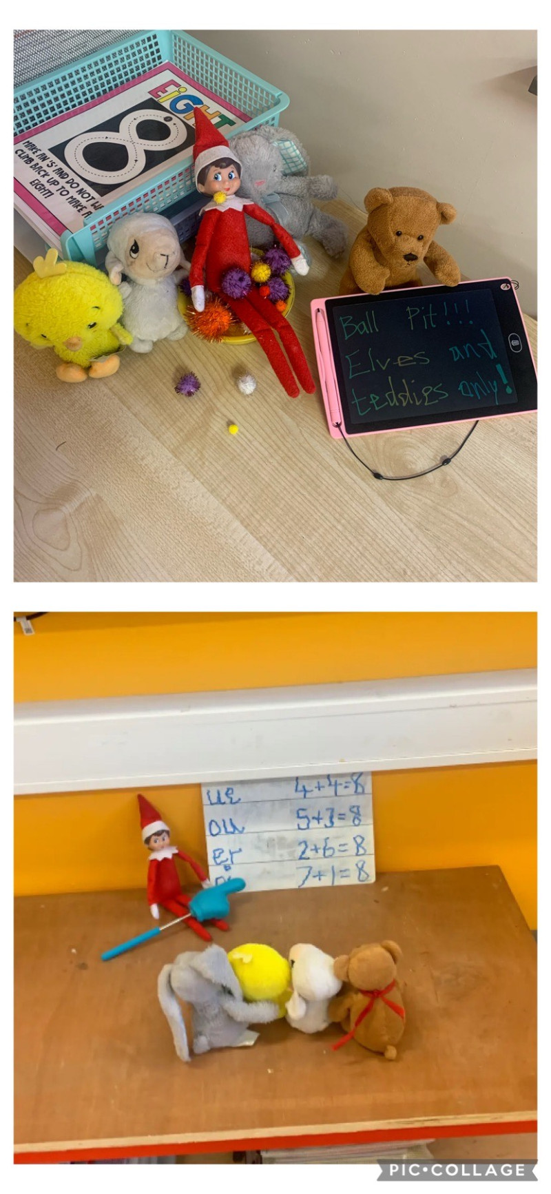 Bauble the elf came to visit us for a few weeks! We really enjoyed having her in our class, she played lots of funny tricks on us! She even pretended she was Ms. Halpenny and started teaching our class teddies!