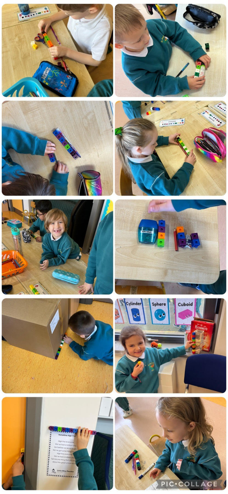 We have been learning all about Length in Maths. We had loads of fun measuring lots of objects in the classrooms using cubes!