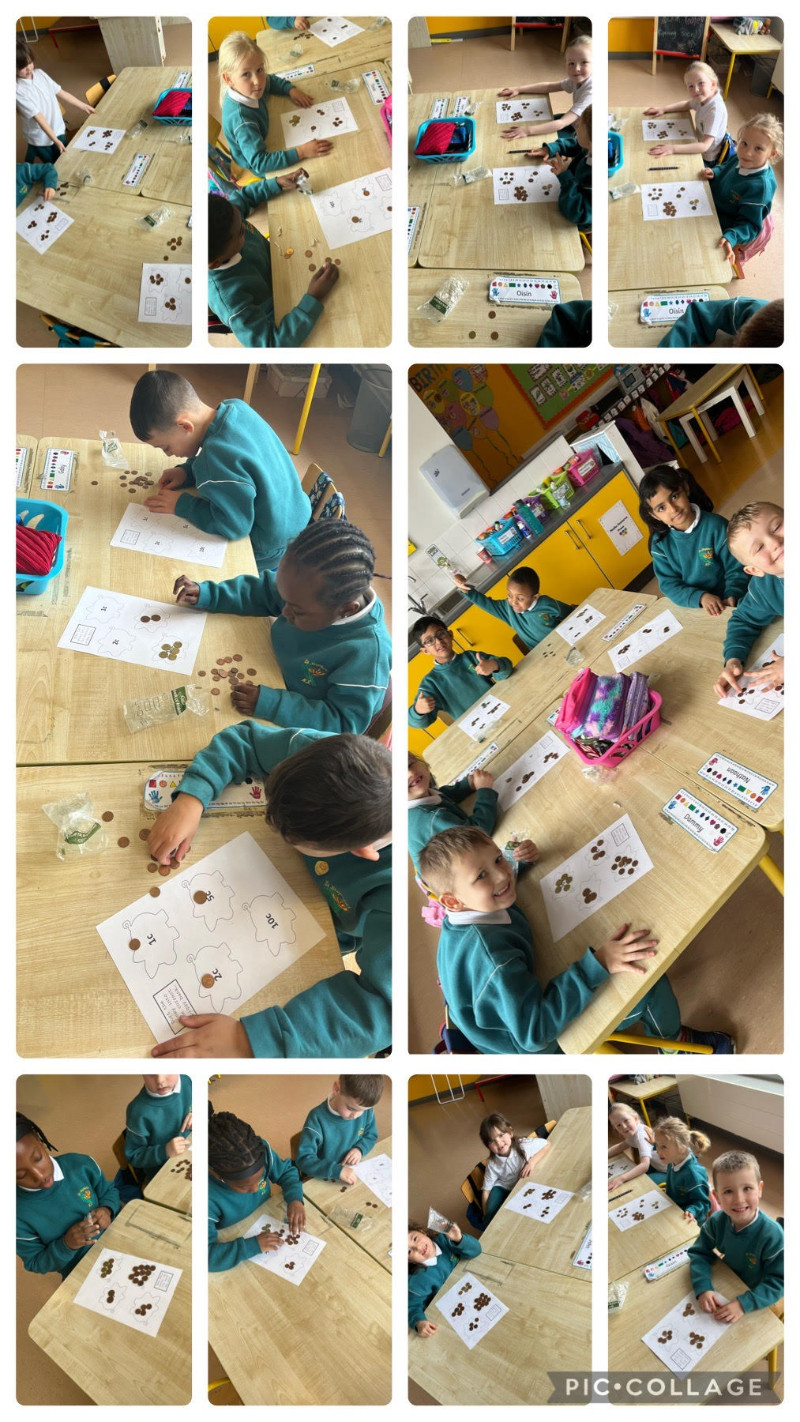We have been exploring the concept of money in Maths. We have loved role-playing using real money and buying things in our Aistear Bakery shop.