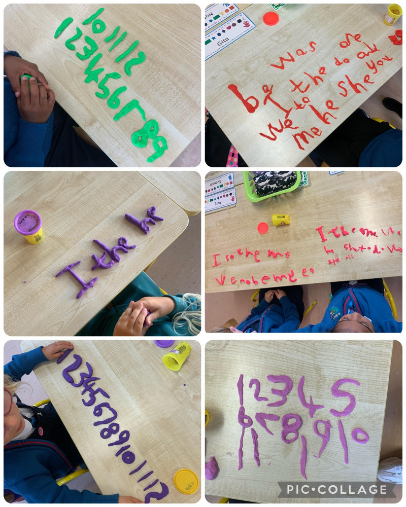 We have been working hard to learn our tricky words lots of different materials.
