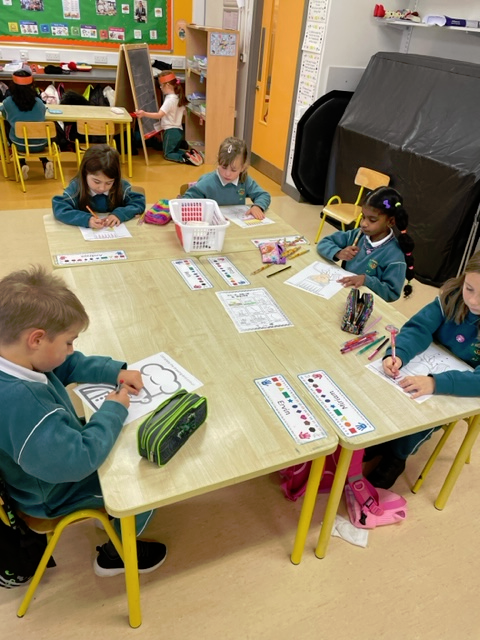 Ms. Halpenny’s Senior infants have been very busy over the past few weeks, we have been working so hard to decorate our new classroom with all of our wonderful work.
