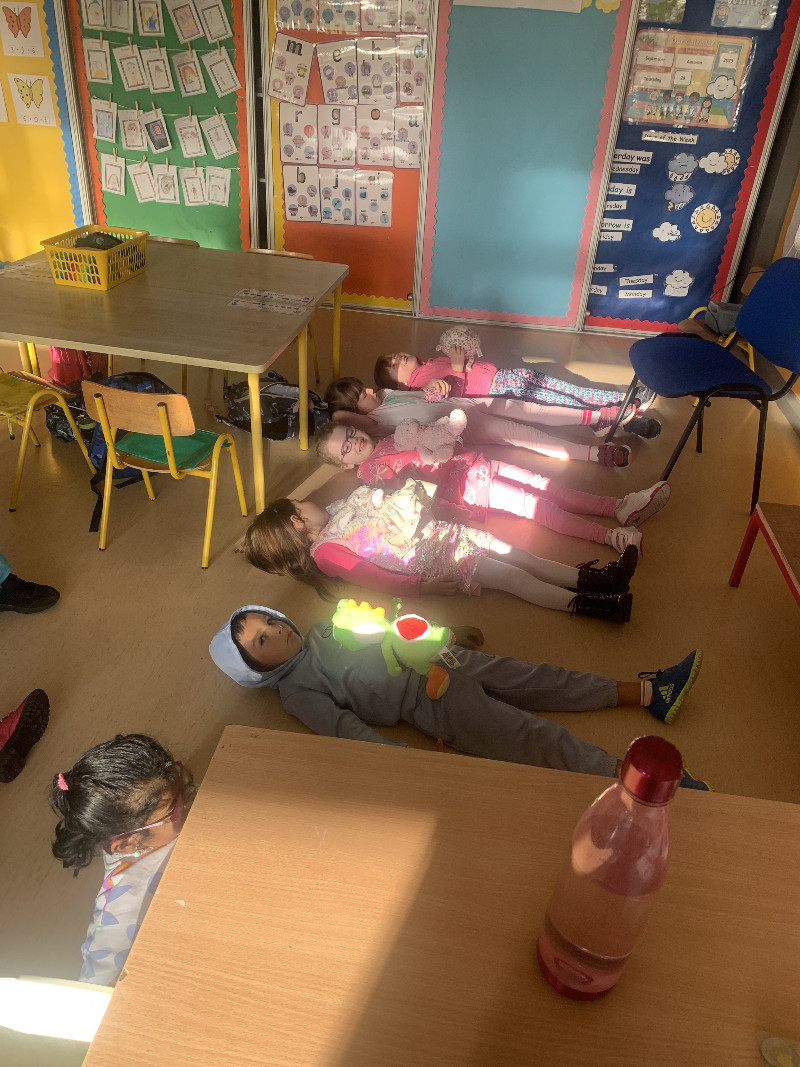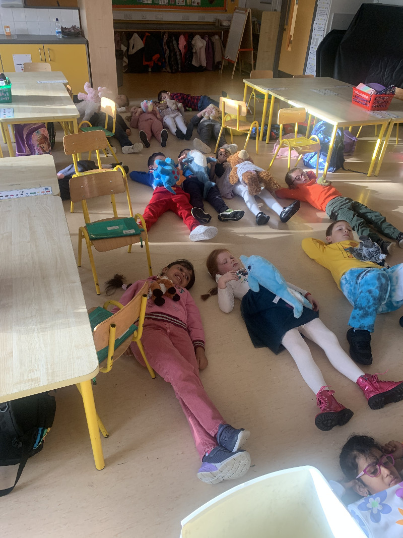 We have been practicing lots of breathing exercises and mindfulness activities. Have a look at us relaxing with our teddies!